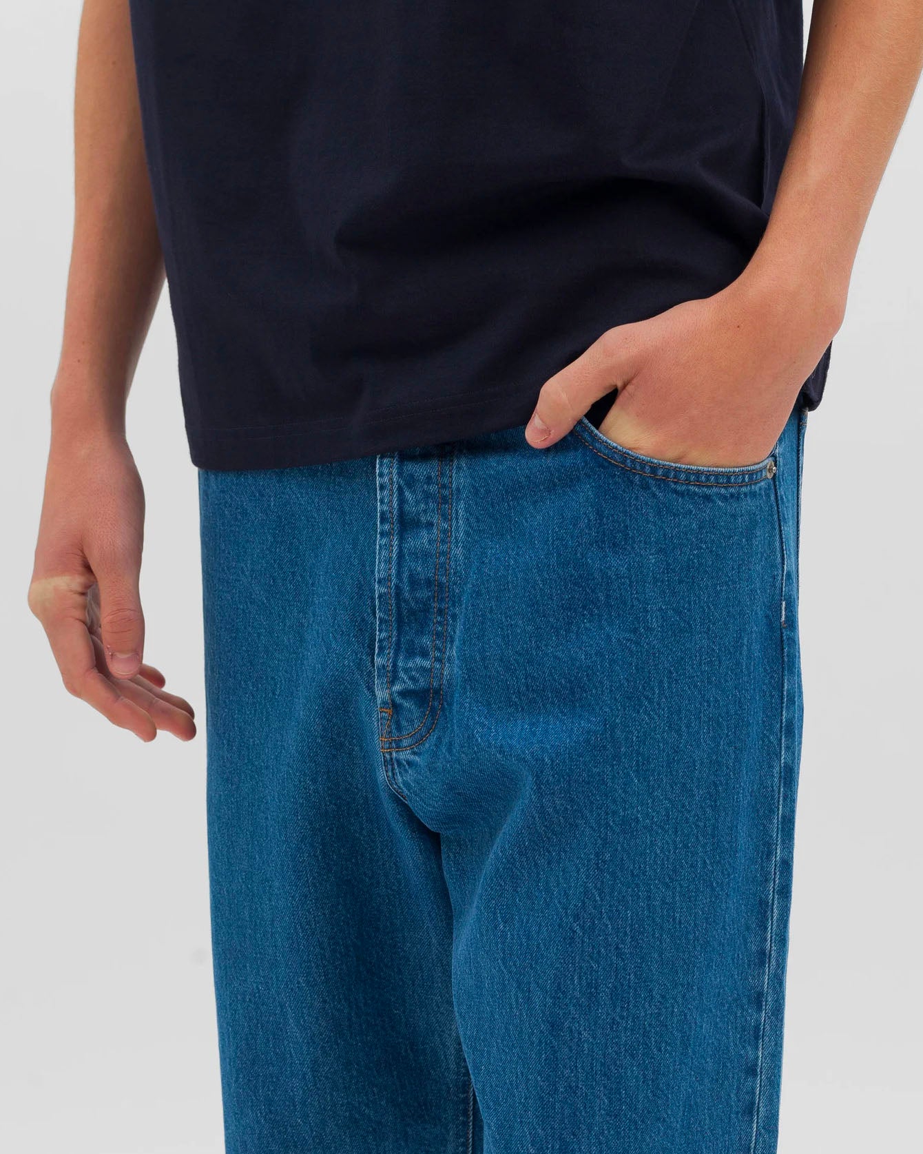 El Norse Relaxed Denim es un vaquero de cinco bolsillos confeccionado en denim índigo orgánico y fabricado en Italia. Para confeccionar los ribetes de esta prenda se ha empleado un uso racional del agua y la energía. Se ha utilizado un proceso mecánico especial sin impacto, lo que significa que no se han utilizado productos químicos sintéticos para fabricar o terminar los remaches y los botones. Debido al proceso de teñido natural con índigo, cada prenda desarrolla una pátina única con el uso. Este estilo, de tiro más largo y pernera más ancha que se estrecha ligeramente desde la rodilla hasta el dobladillo, tiene un ajuste ligeramente más holgado.