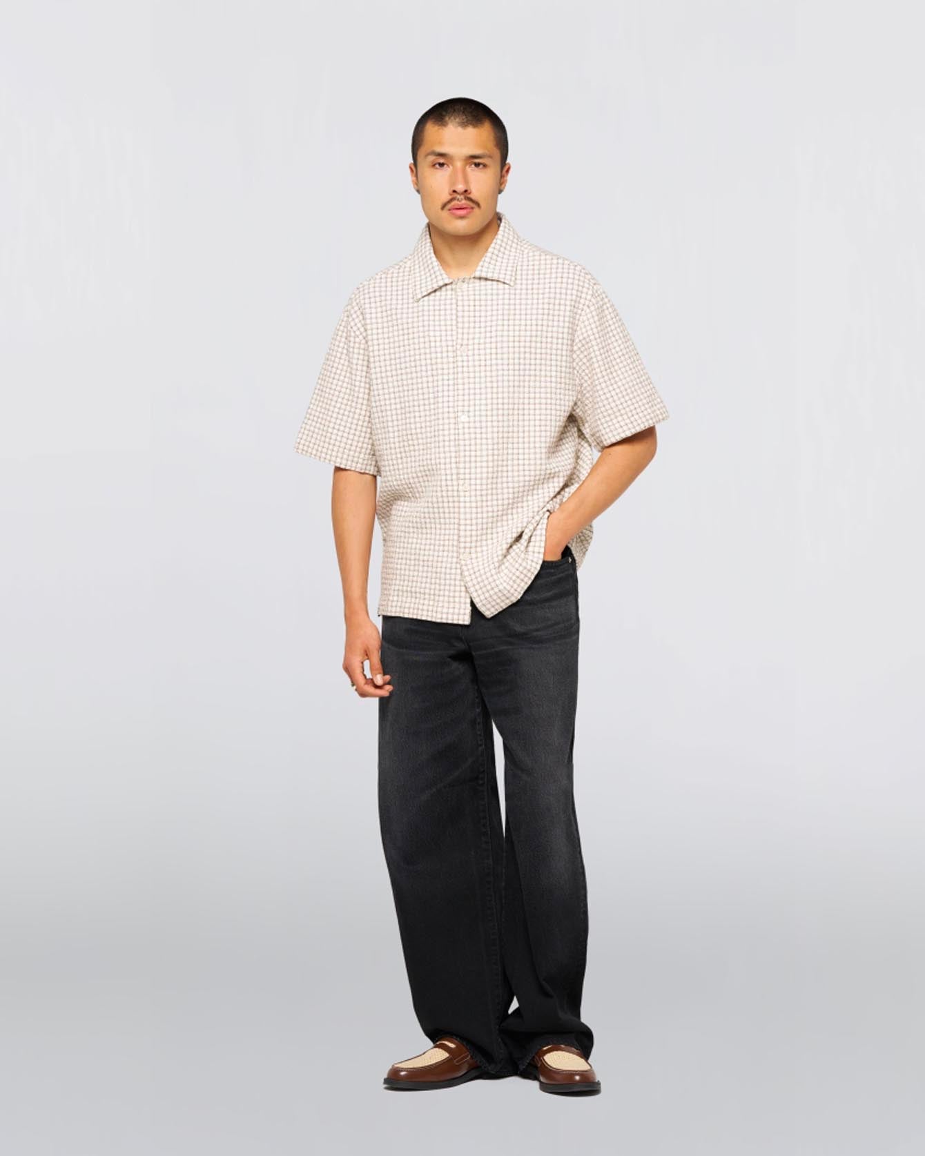 Zed Shirt Checked Waffle White Brown
